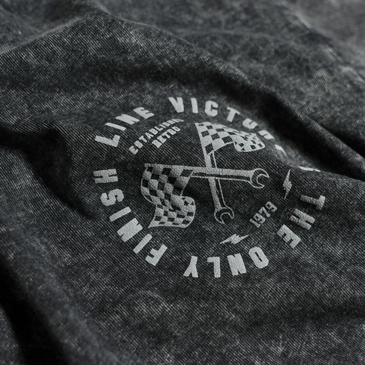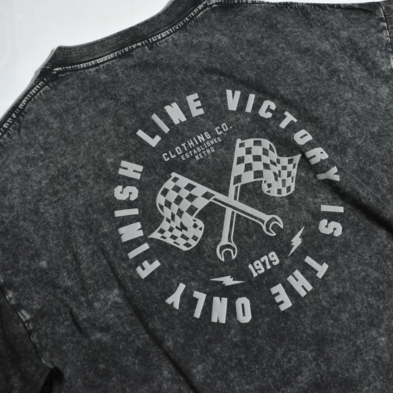 チェッカーフラッグとレンチがクロスした、ヴィンテージ感あふれるレトロなデザインがプリントされています。シンプルながらも存在感があり、一枚で着こなすのはもちろん、ジャケットやシャツとのレイヤードスタイルにもおすすめです。