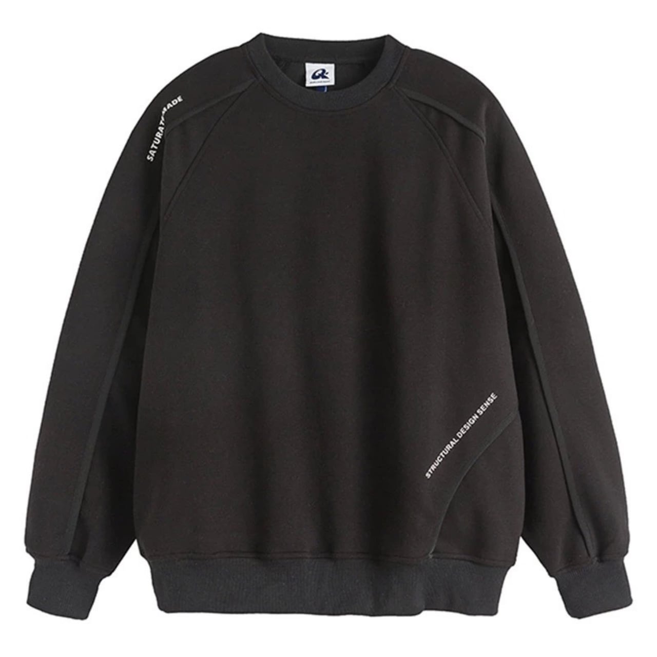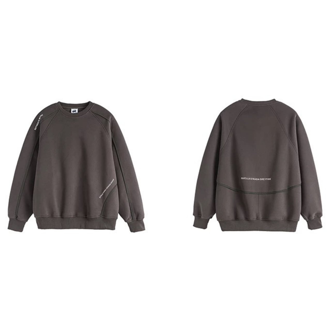 Crew neck rib knit cuffs hem stitch work sweat 3colors 00143