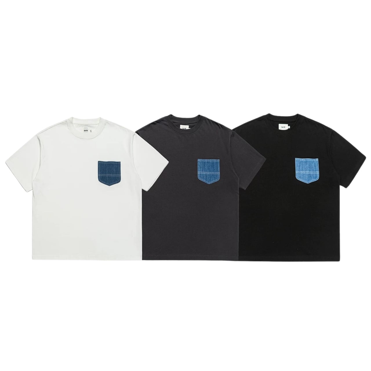 Cut kick short sleeve round neck pocket tee 3colors 00278